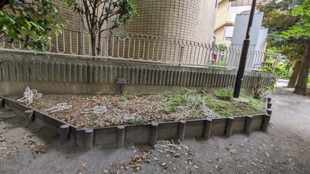 「川がテーマなのになぜ公園の植栽?」と思われるかもしれませんが、サステイナブルな視点でみると雨の循環(水の循環)でつながっています。 それから重要なのは、この児童公園が暗渠の蛇崩川横に位置している(図参照)という偶然もあり、サステナ部としては最適な場所と思います。