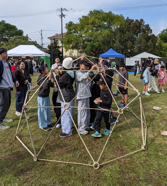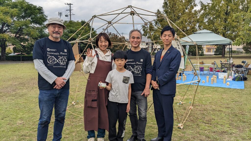 竹林での里帰りを終えた次の日、近隣の美濃加茂市(岐阜県)の地域イベント「ハニカム秋祭り2025」で竹の宇宙船体験イベントを実施しました。