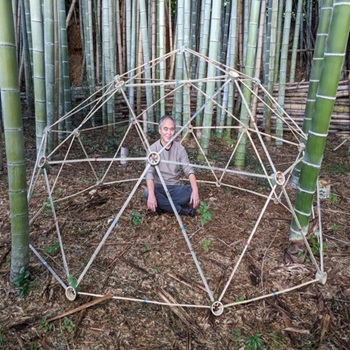 100%竹でできたエシカルバンブードーム「竹の宇宙船」が、岐阜県美濃加茂市の「竹魂(たけたま)」さんの竹林に里帰りしました。 この竹林の材料で作られた「竹の宇宙船」、さすがしっくり納まります