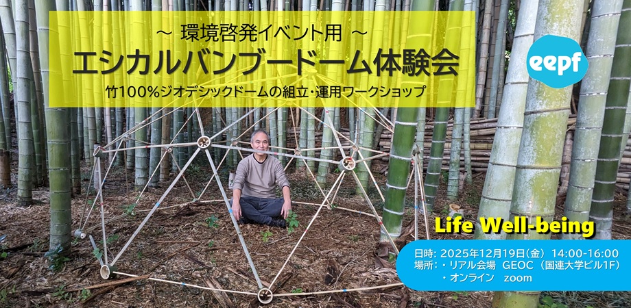 金属やプラスチックを一切使わず竹100%で作られたeepfオリジナルの環境イベント用エシカルバンブードーム。その組立から運用までが学べる体験会を下記の要領で開催します。